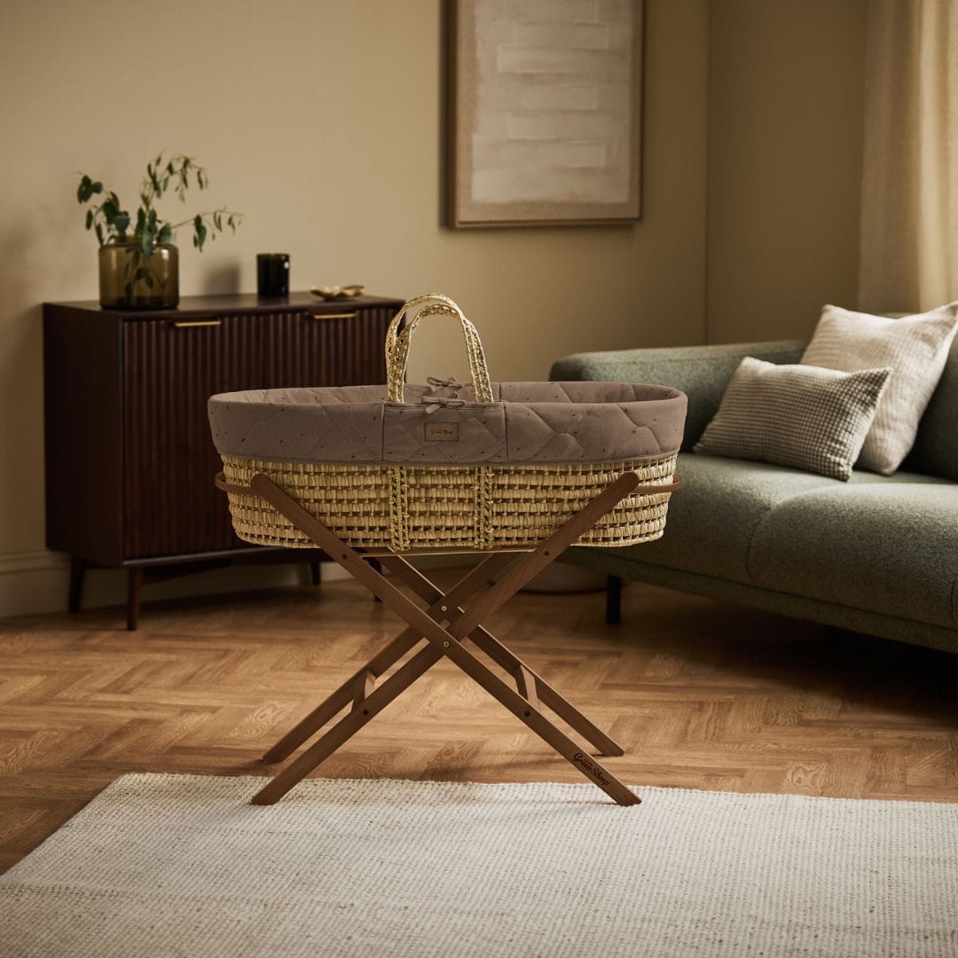Organic Rice Quilt Moses Basket, Mattress & Walnut Foldable Stand Cocoa with Ebony