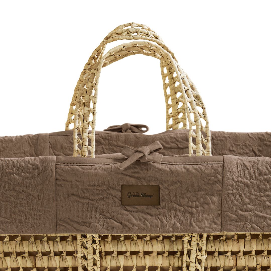 Organic Furrow Knitted Moses Basket, Mattress & Natural Rocking Stand Cocoa